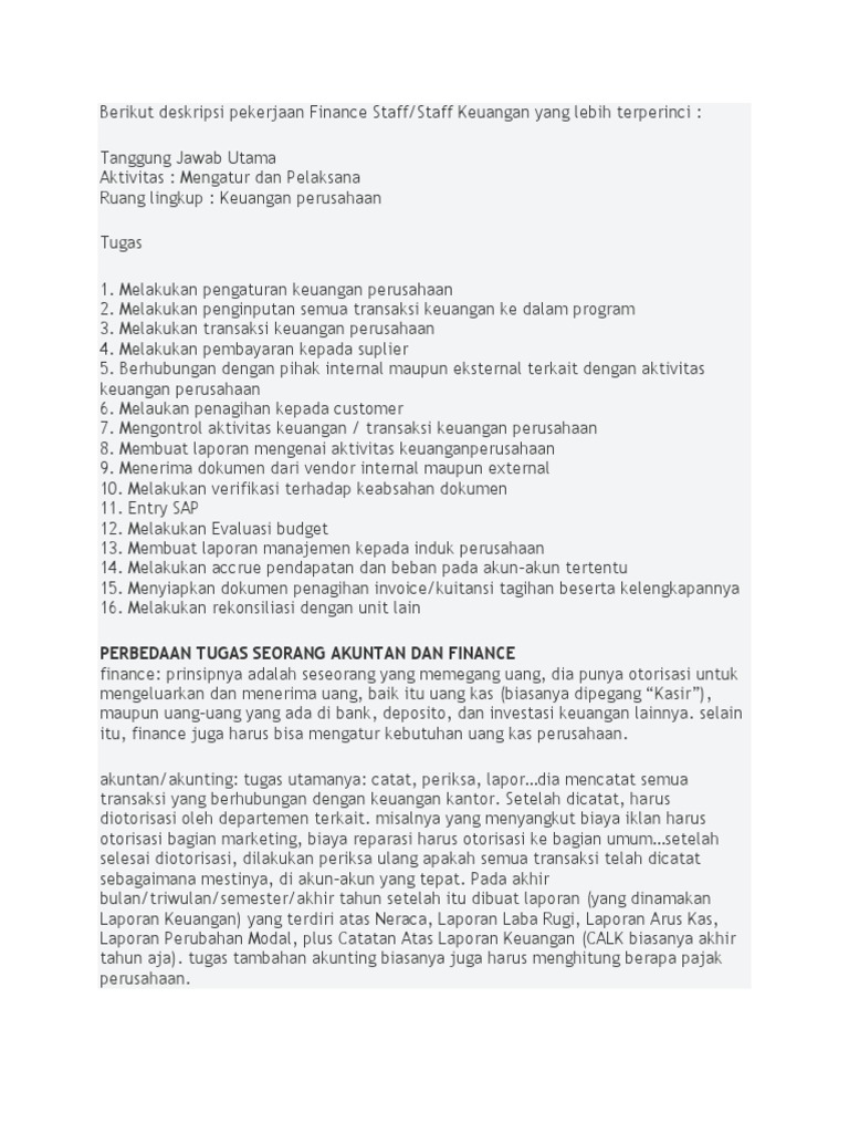 Berikut Deskripsi Pekerjaan Finance Staff Pdf